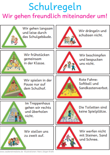 Ich spiele in der Pause nur auf dem Schulhof. Den Schulhof darf ich ohne Erlaubnis nicht verlassen.